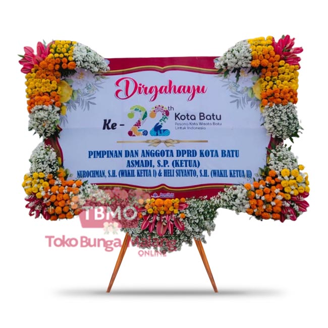 Rangkaian bunga papan yang dapat digunakan untuk memberikan ucapan selamat. Dengan rangkaian bunga papan murah malang selamat dilantik ini, Anda dapat menunjukan rasa hormat dan bahagia terhadap orang-orang terdekat Anda di momen-momen spesialnya.